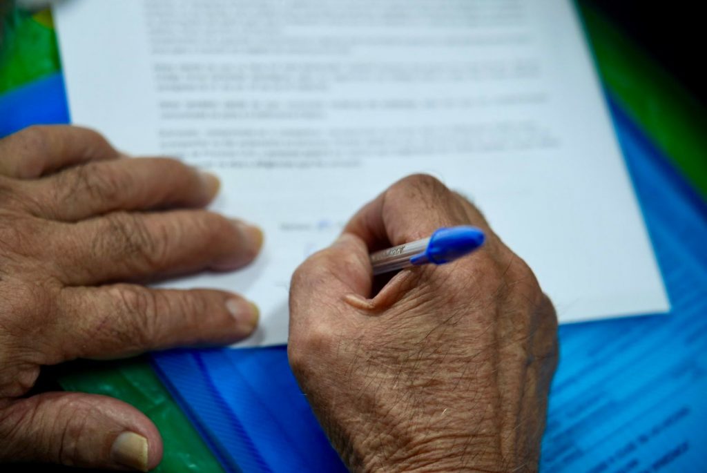 A dona de casa Cleonice Barbosa buscou o atendimento da Defensoria para o pai, o aposentado Lúcio Barbosa, que não está conseguindo tirar uma nova via da carteira de identidade por conta do registro de nascimento estar ilegível.