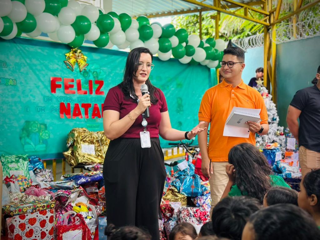 A Defensoria Pública do Estado do Amazonas (DPE-AM) realizou, nesta sexta-feira (19), a entrega dos presentes arrecadados pela campanha solidária “Adote um Sonho, Ilumine um Natal”, iniciativa vinculada à tradicional mobilização “Papai Noel dos Correios”. A ação, em parceria com os Correios, ocorreu na Escola Municipal Professor Emanuel Rebelo da Cunha, localizada na zona rural de Manaus.