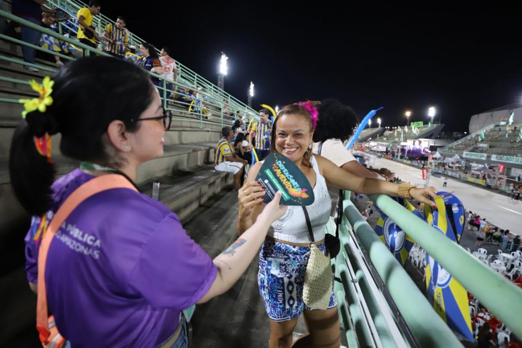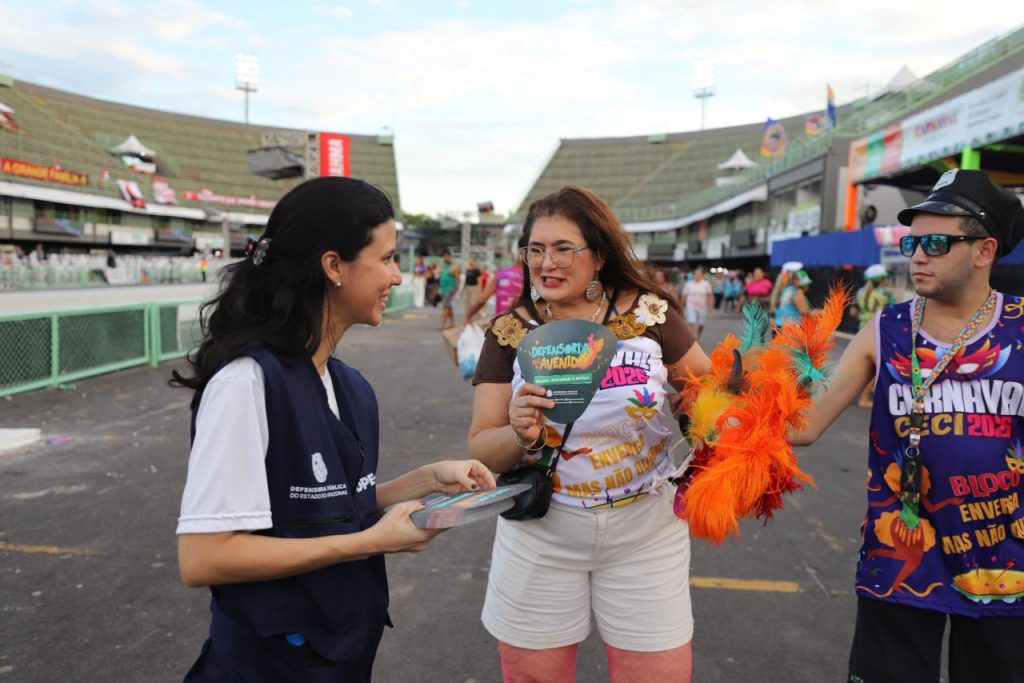 A Defensoria Pública do Estado do Amazonas (DPE-AM) realizou, na noite deste Sábado Gordo de Carnaval, dia 14, uma ação educativa e de conscientização durante o desfile das Escolas de Samba do Grupo Especial, no Sambódromo de Manaus. Defensoras públicas e servidores distribuíram material informativo da campanha “Defensoria na Avenida” e orientaram o público sobre os serviços da instituição.