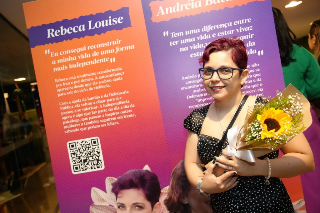 “Após a temporada itinerante, a exposição ocupou a recepção do Núcleo de Defesa da Mulher da Defensoria Pública. Queremos com essa iniciativa inspirar mulheres que hoje estão no meio do furacão, passando por toda a dor da violência e que, muitas vezes, não conseguem enxergar uma saída, não conseguem enxergar uma vida sem violência”, destaca a defensora pública Caroline Braz, coordenadora do Nudem.